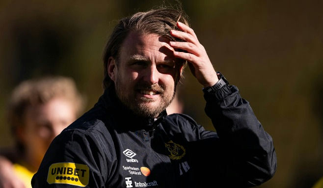 Karl Marius Aksum tog på sig Mjällby AIF:s premiärförlust mot Hammarby IF. Tom Pettersson håller inte med huvudtränaren. Fotbolltransfers. com